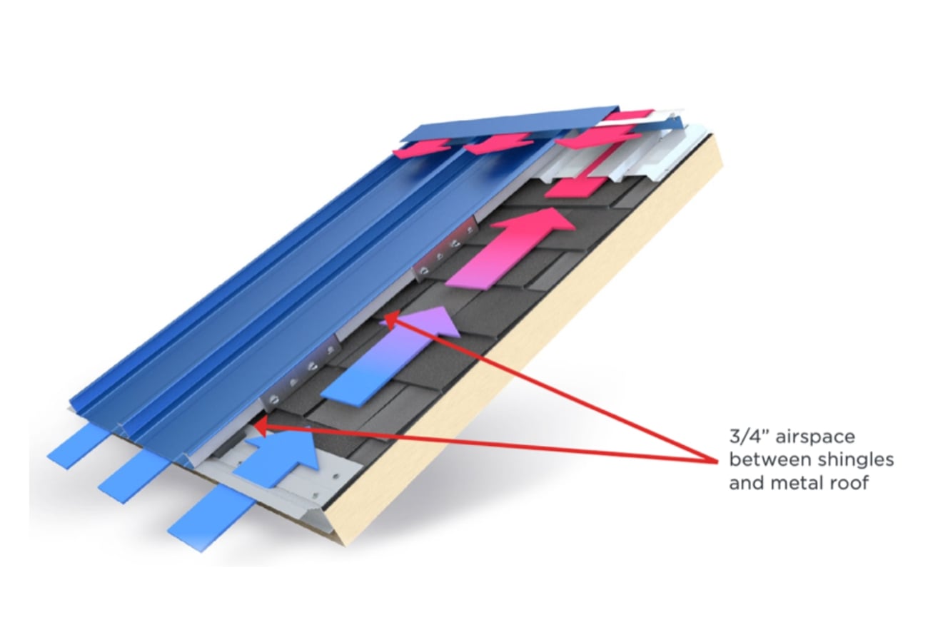 Above Sheathing Ventilation (ASV) means adding a ventilated airspace between the metal roofing and the substrate below. While not discussed frequently, ASV is perhaps even more impactful than cool metal roof pigments. This airspace enables energy to move and vent into the atmosphere instead of absorbing into the building structure. Conversely, when the warm air remains in the structure, utility expenses are increase.