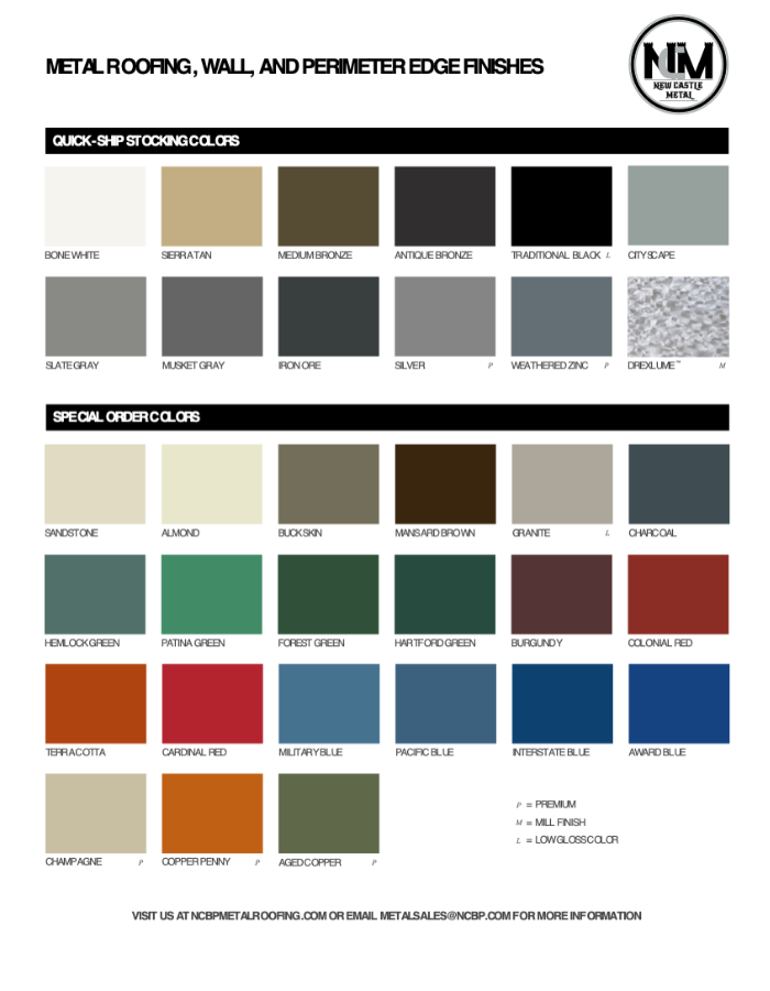 Drexlume® Substrate: Mill finished Galvalume® with a two-sided, clear acrylic finish.