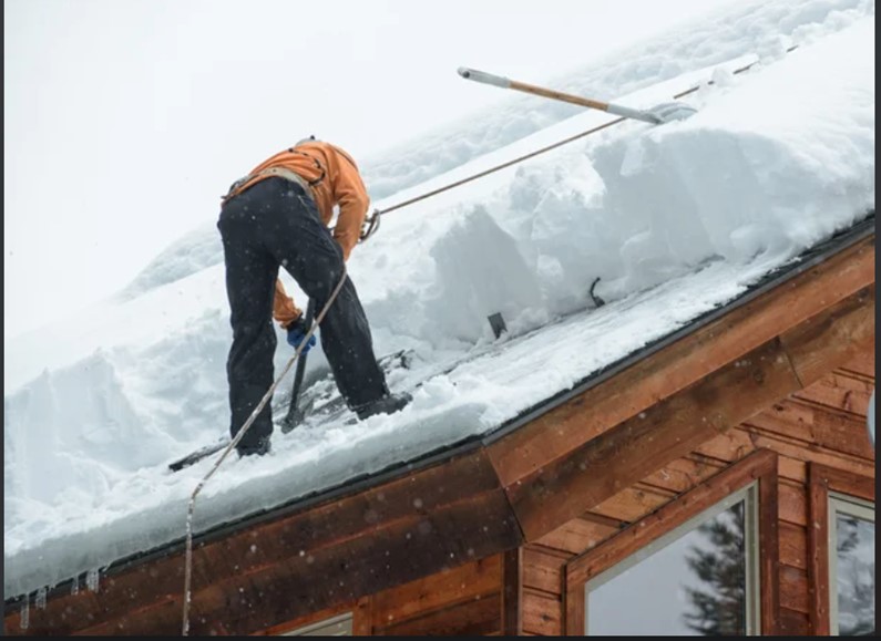 Total rooftop snow removal on sloped roofs up to a 6/12 pitch (other pitches become nearly impossible to walk on when snow covered).